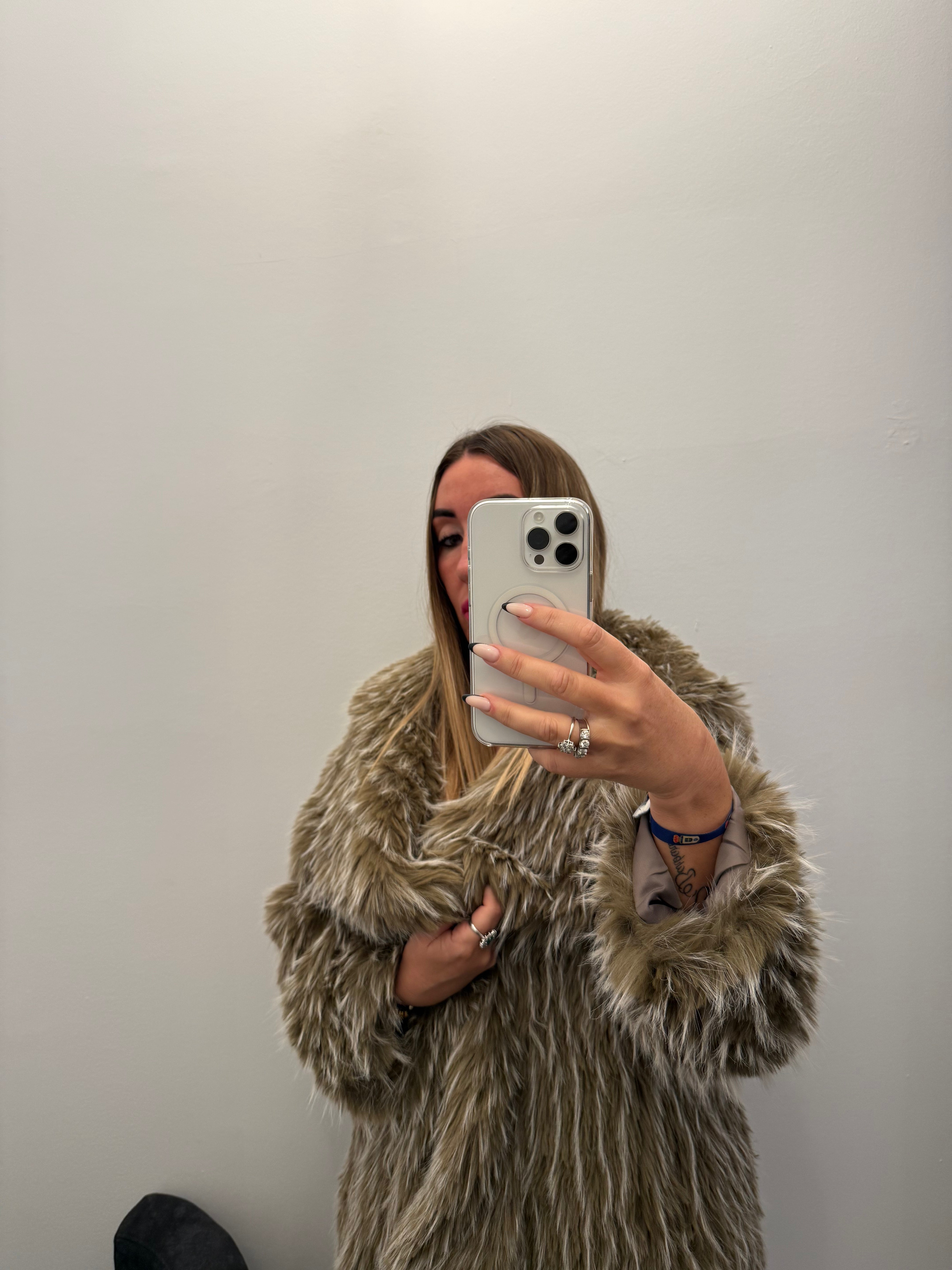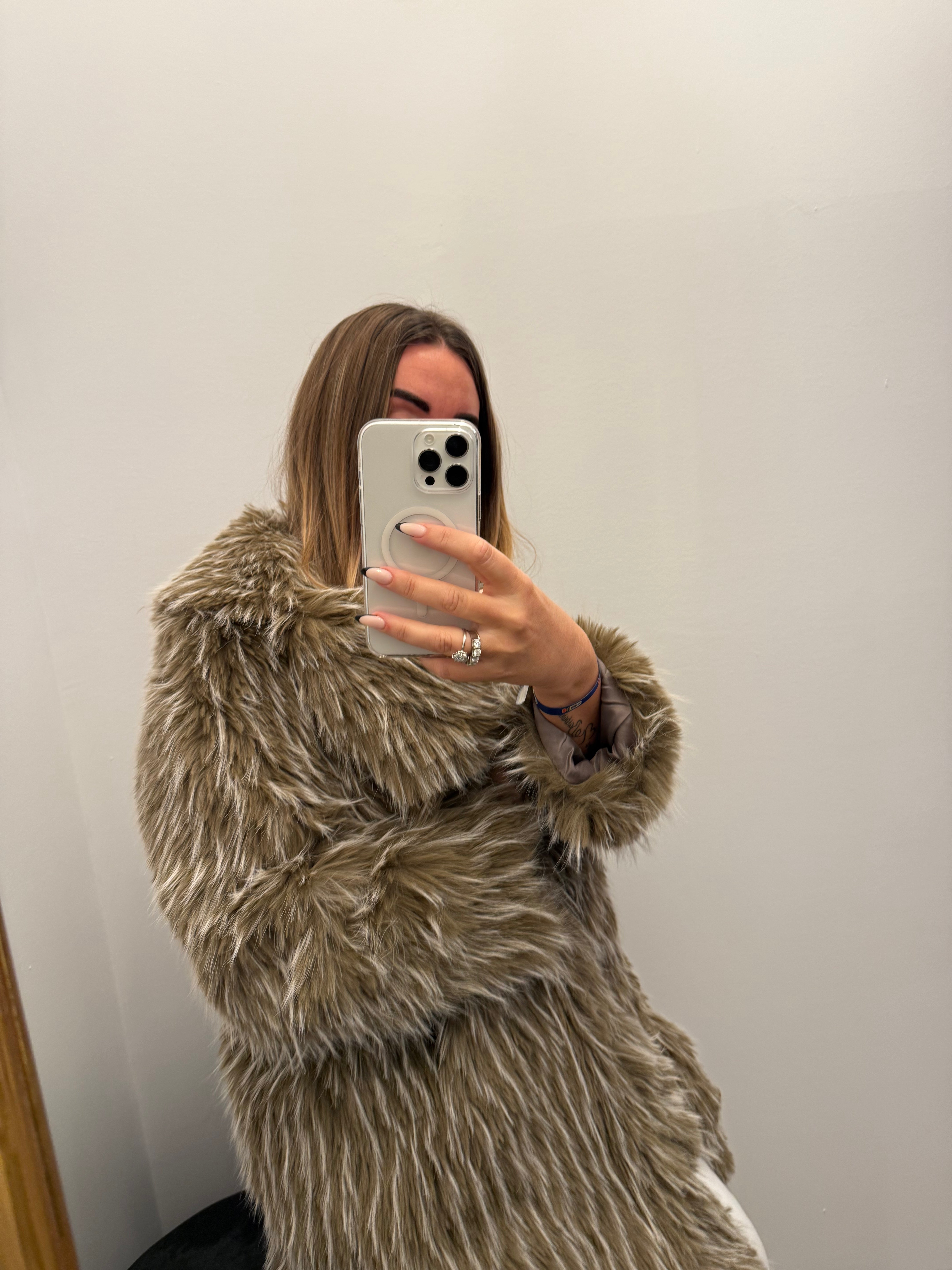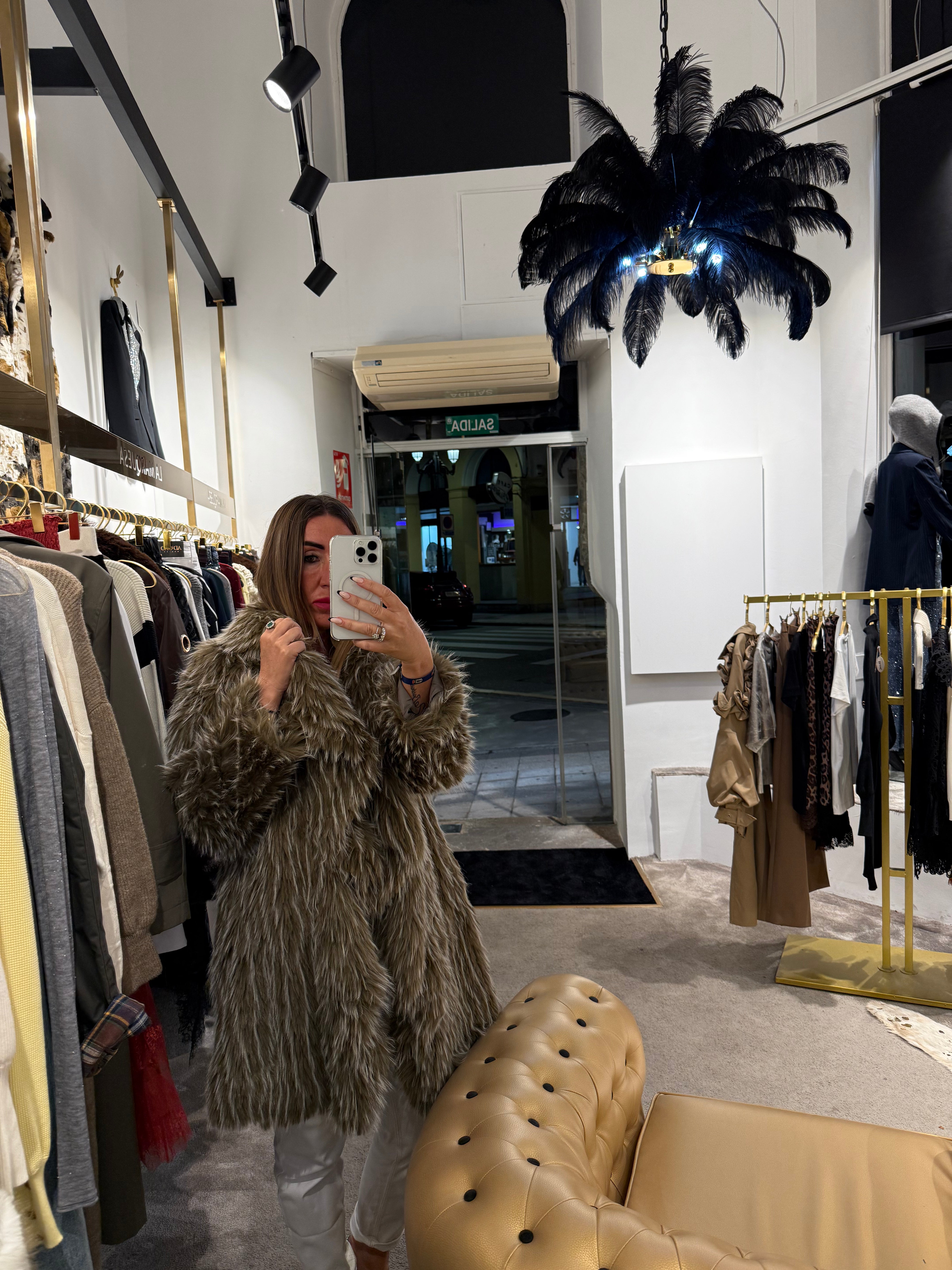 Abrigo pelo marrón combinado con beige. Talla única da hasta una talla 44 perfectamente Muy calentito y ligero.